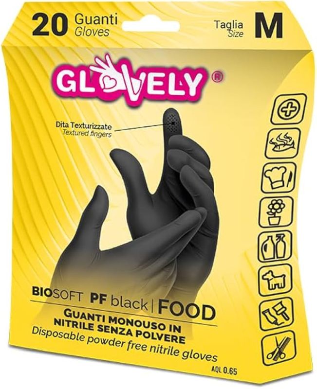 Guanto in nitrile nero, senza polvere, testurizzato sulle dita, idoneità alimentare. 240 mm – min. 3,0 gr. ± 0,2 AQL 0.65