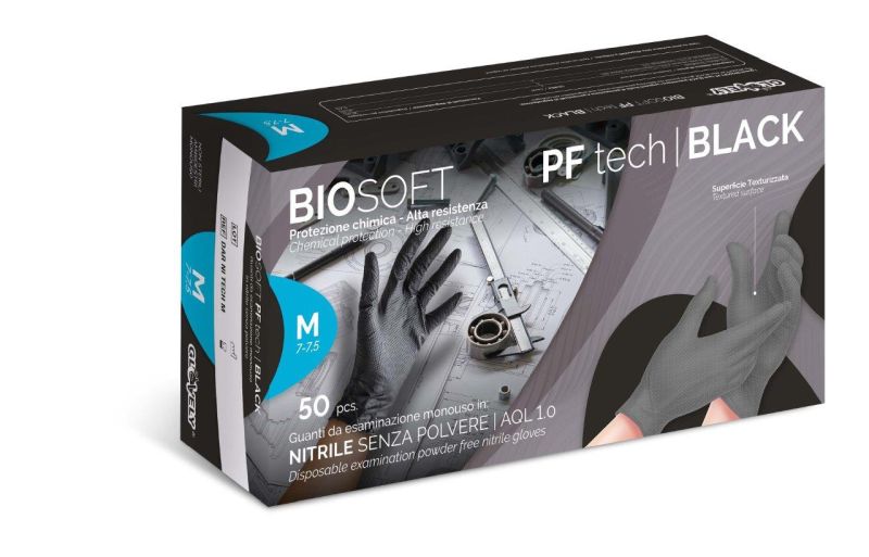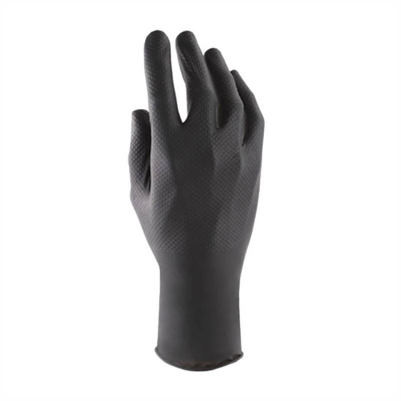 Guanto in nitrile nero, senza polvere, superficie testurizzata 3D a diamante, idoneità alimentare. 240 mm – min. 8,4 gr. ± 0,2 AQL 0.65