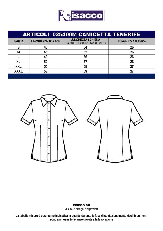 La camicetta Tenerife è una camicia da donna a manica lunga bianco. Adatta per il settore alberghiero, ristorazione, da sala e divisa da lavoro per bar, pub, ristoranti, alimentari. Con bottoni a vista, modello sciancrato e stretch.