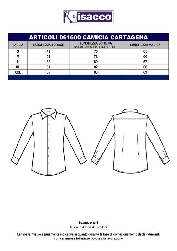 Camicia da uomo Cartagena a manica lunga bianco. Ottima per settore alberghiero e servizio in sala. Divisa da lavoro per bar, pub, ristoranti, enoteche e catering. Modello slim con collo classico, modellata per risultare leggermente sciancrata.