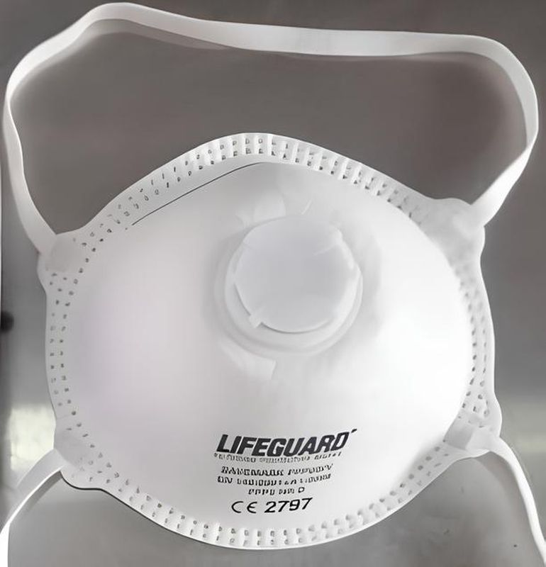 Facciale filtrante monouso FFP2 a conchiglia valvola con test polveri dolomite