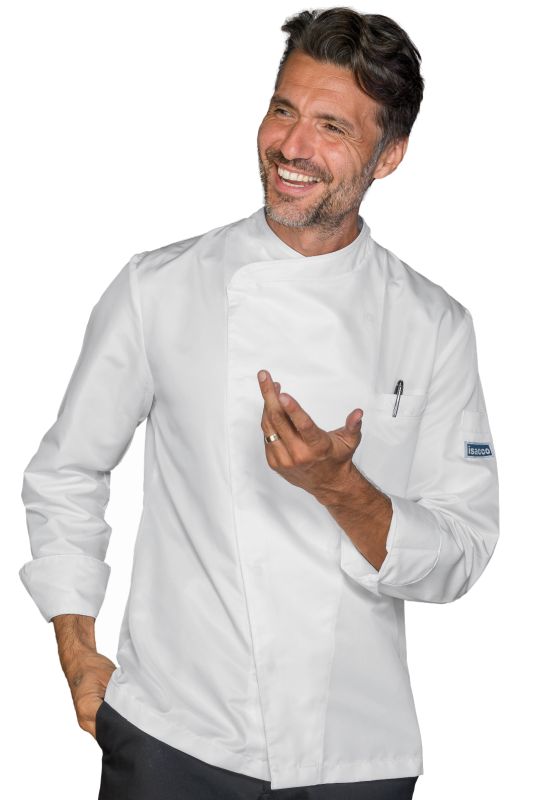 Giacca da Cuoco Tokyo bianco slim unisex a manica lunga ha la schiena completamente in rete microfor per garantire un ottima traspirabilità . Ideale come divisa per uomo e donna da chef in cucina, ristorante o catering. Taschino al petto e alla manica con allacciatura con bottoni a pressione