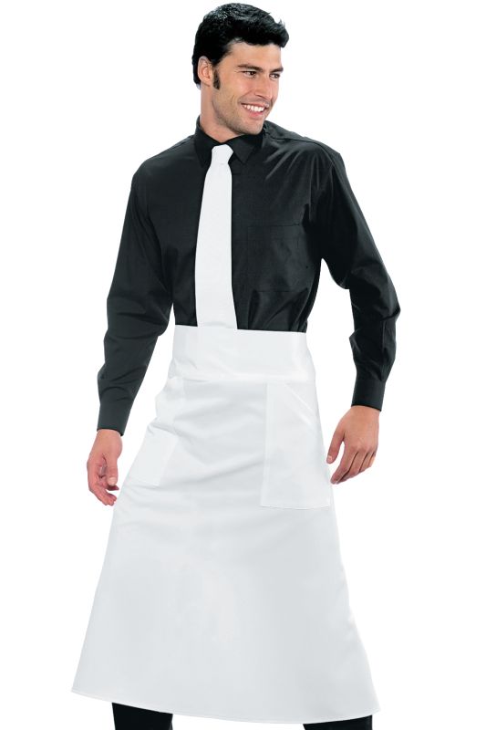 Grembiule vita Versailles cm 92×88 bianco. Ideale per settore alberghiero e parannanza per ristorazione per cameriere (sala). Ideale come divisa da lavoro per bar, pub, ristoranti, alimentari e catering. Con doppia tasca, 100% Poliestere.