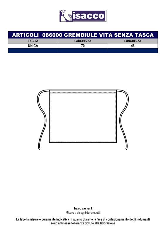 Grembiule vita 70×46 con tasca bianco. Ideale per settore alberghiero e parannanza per ristorazione e cuoco. Divisa da lavoro per bar, pub, ristoranti, alimentari, cucine e catering. Con lacci da 90 cm in tessuto.