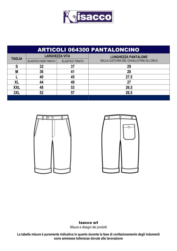 il nostro pantaloncino corto da lavoro bianco. Ideale per settore alimentare, turistico e alberghiero. Utilizzata come divisa da lavoro per cucina e ziende, divisa da lavoro e da cuoco e pizzaiolo. Con elastico ai lati, 2 tasche davanti e tasca posteriore.