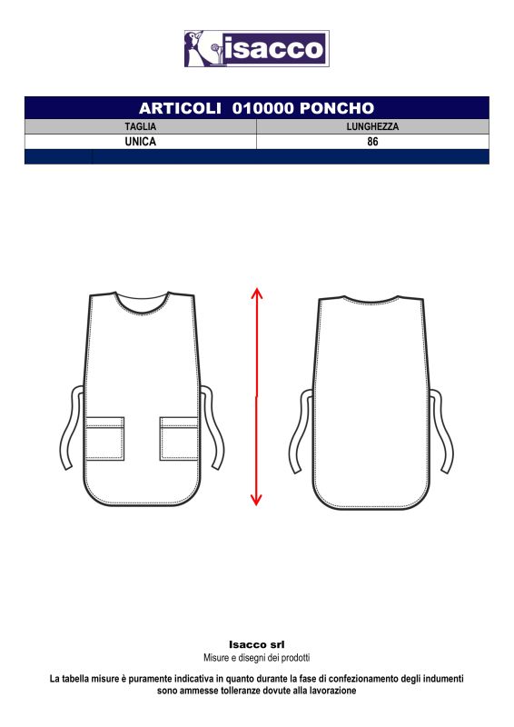 Il Poncho unisex Senza maniche bianco. Ideale per settore alimentare, igiene, pulizia, estetico, sanitario. Utilizzata come divisa da lavoro per aziende di servizi. Con due tasche e lacci laterali. Taglia unica per vestire tutte le taglie.