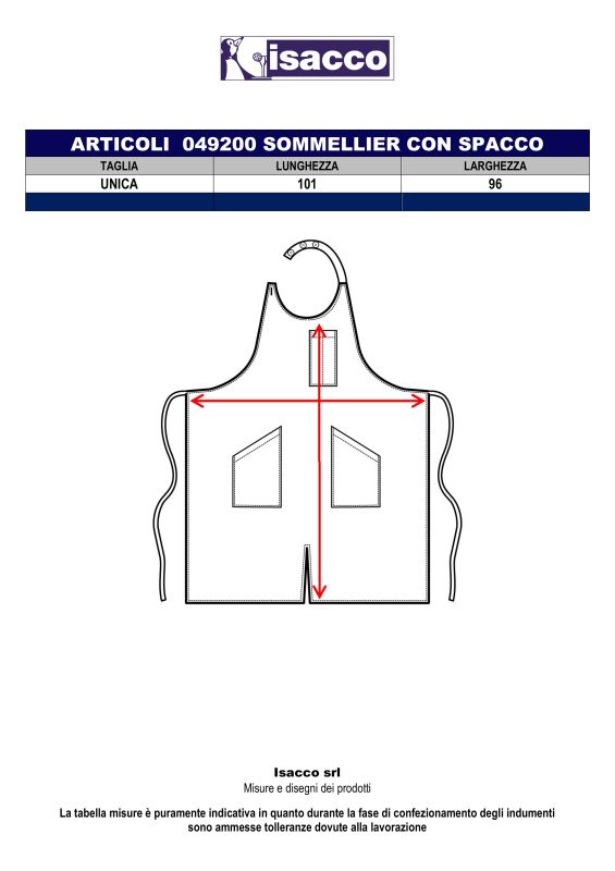 Grembiule con spacco Sommelier Unisex nero. Ideale come divisa da lavoro per cantine, bar, enoteche e bistrot. Con allacciatura dietro al collo che ne permette la regolazione della pettorina. Con taschino al petto e 2 ampie tasche in vita.